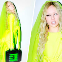 Рэперша Инстасамка примерила образ неоновой невесты с одним глазом. Снимками она поделилась в Instagram (владелец компания Meta признана в России экстремистской и запрещена).