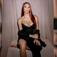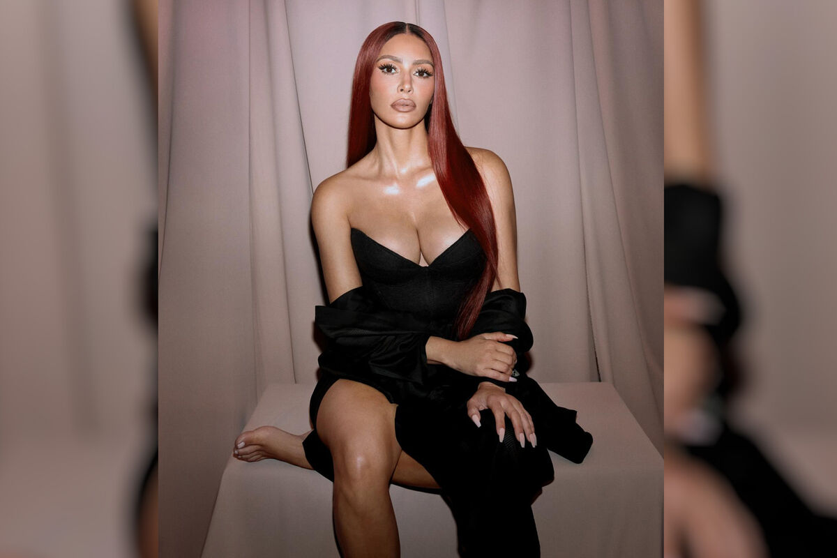 Ким Кардашьян перекрасилась в красный оттенок и снялась с помадой на губах. Модель представила новые оттенки косметических средств. На других фото она показала макияж для блондинок и брюнеток. Перед камерой она позировала в черном корсетном мини-платье с глубоким декольте.