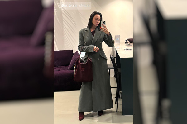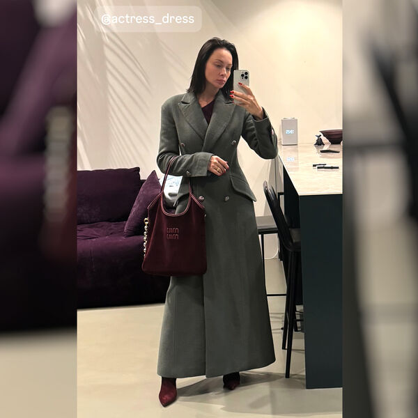 Настасья Самбурская позировала в длинном сером пальто, которое дополнила бордовые сапоги на каблуках и сумкой бренда Miu Miu, стоимость которой составляет около 180 тысяч рублей. Волосы она распустила и отказалась от макияжа.