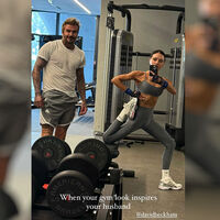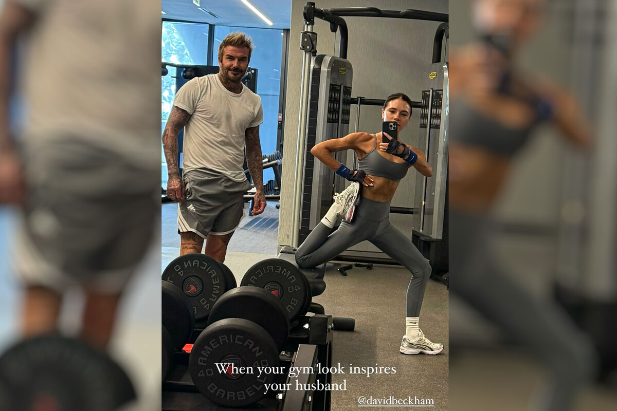 50-летняя Виктория Бекхэм снялась во время тренировки со своим супругом, бывшим футболистом Дэвидом Бекхэмом. Влюбленные позировали перед зеркалом в спортзале. Дизайнер была запечатлена в сером топе, леггинсах в тон, белых высоких носках и кроссовках. Спортсмен предпочел белую футболку и серые шорты. Виктория предстала без косметики и с собранными в пучок волосами.