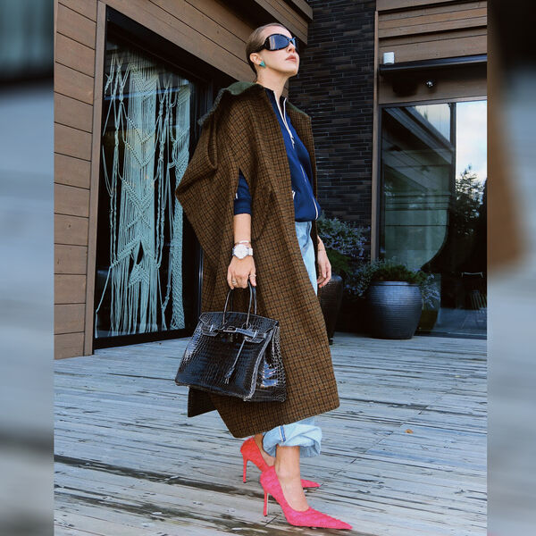 Ксения Собчак выложила в личный блог снимки, где позировала в синей олимпийке Celine, голубых джинсах Рervert, темно-коричневом пальто Loewe, черных солнцезащитных очках Acne Studios и розовых остроносых туфлях Martine Rose. Стоимость обуви на сайте Fabric of Society, специализирующемся на продаже дизайнерских вещей, составляет $835 (около 80 тысяч рублей). Завершением наряда стала черная сумка Hermès.