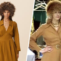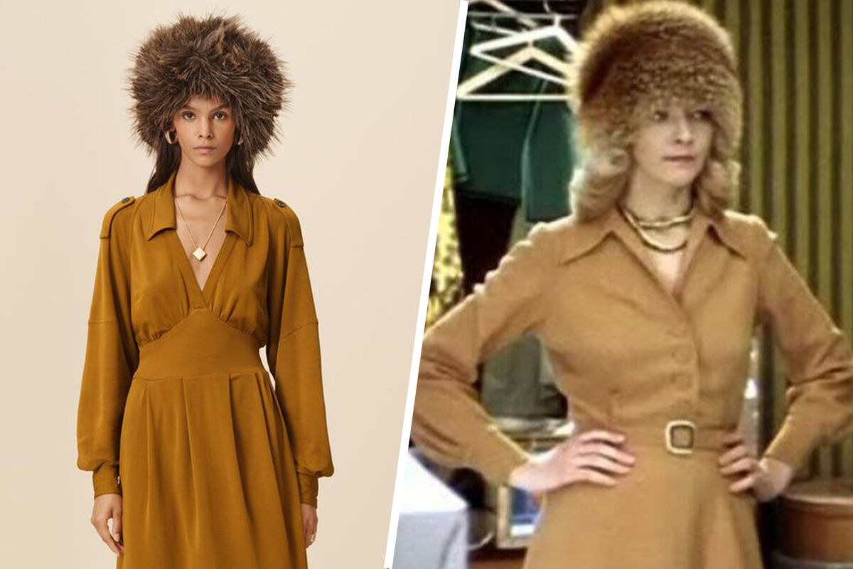 В новой рекламной кампании бренда модель позировала в горчичном платье-рубашке и меховой шапке. В соцсетях образ начали обсуждать из-за очевидного сходства с нарядом Нади из советского фильма «Ирония судьбы».