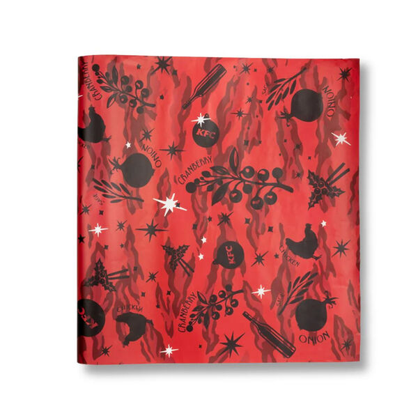 Lickable Wrapping Paper пропитана ингредиентами бургера Stacker Burger из сети фастфуда. На красной бумаге изображены логотипы компаний и наггетсы. Согласно описанию, бумагу можно облизывать.