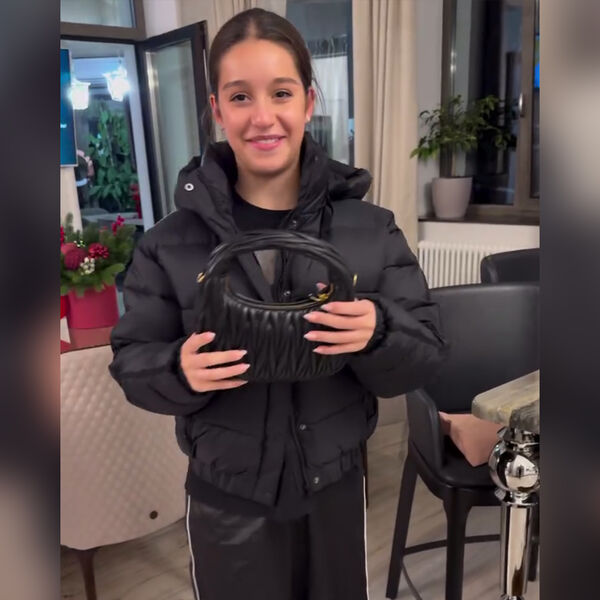 Ксения Бородина засняла Марусю, которая рассматривала подарки. Телеведущая купила дочери черный пуховик американского бренда Alo Yoga и кожаную сумку-хоббо с золотой фурнитурой итальянской марки Miu Miu. Стоимость аксессуара на официальном сайте составляет $2750 (примерно 289 тысяч рублей).