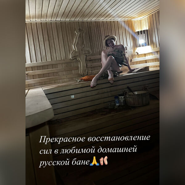 «Прекрасное восстановление сил в любимой домашней русской бане», — подписала кадр артистка.