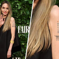 У Анджелины Джоли есть похожий рисунок на груди, только там птица летит вверх. Знаменитость продемонстрировала татуировку, когда появилась в платье с декольте на красной дорожке церемонии вручения премии «Тони» в Нью-Йорке в июне.