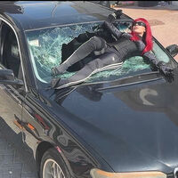 24-летняя Инстасамка показала кадры со съемок своего нового клипа. На одном из снимков рэперша лежала на разбитом лобовом стекле автомобиля. Исполнительница была запечатлена в красном парике и солнцезащитных очках. Знаменитость надела черный бархатный топ, корсет, треники и ботфорты. На других кадрах Инстасамка сидела за рулем машины.