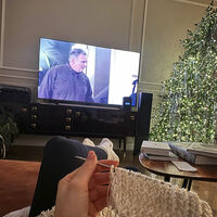 Ила Галич опубликовала фото, на котором сняла процесс вязания и показала интерьер гостиной. У комода с телевизором она поставила елку и украсила ее гирляндами и крупным бантом. Как известно, это интерьер квартиры блогерши на Арбате. Снимки она показала на фоне покупки новой недвижимости.