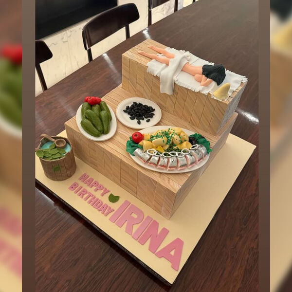 Модели Ирине Шейк подарили на день рождения торт в виде бани и русских закусок