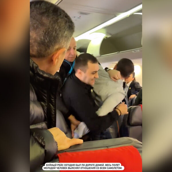Виктория Боня показала, как молодого человека выводят из самолета несколько мужчин. По словам телеведущей, пассажир на протяжении всего полета выяснял отношения с экипажем.
