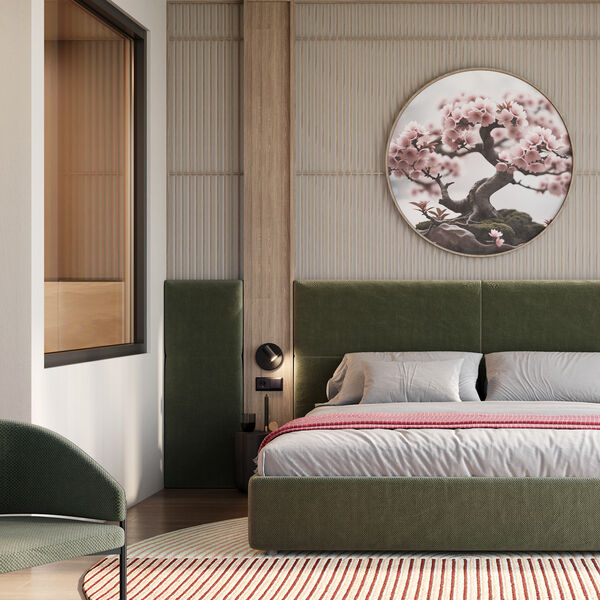 «Для решений в стиле джапанди характерно использование невысокой отдельно стоящей мебели. Это продиктовано традициями азиатских интерьеров и добавляет в пространство равновесия и размеренности. Кроме того, мебель, как мягкая, так и корпусная, чаще всего изготавливается без лишних углов и острых линий. Таким образом пространство в стиле джапанди становится более комфортным и располагает к отдыху», — объяснила дизайнер.