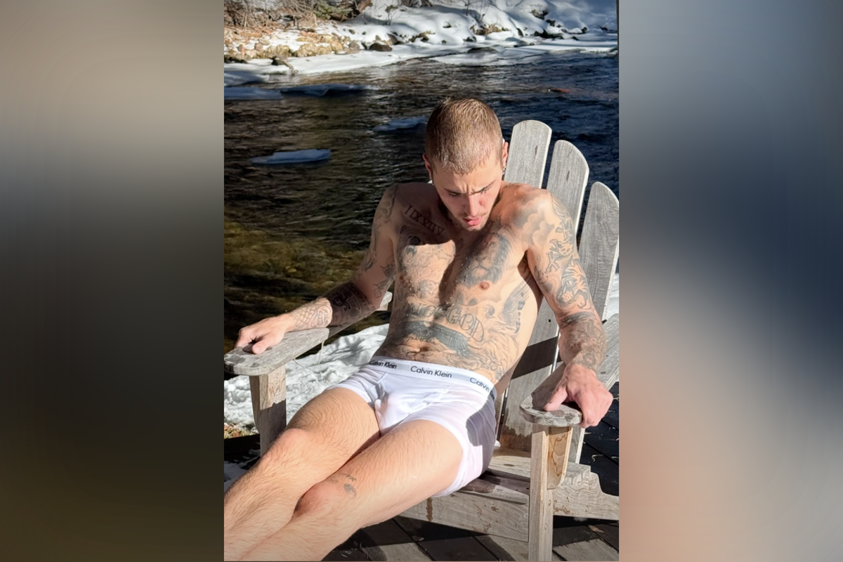 Джастин Бибер позировал в белых трусах Calvin Klein, показывая идеальный накачанный торс. Рэпер сидел в шезлонге у реки в зимнем лесу, несмотря на мороз.