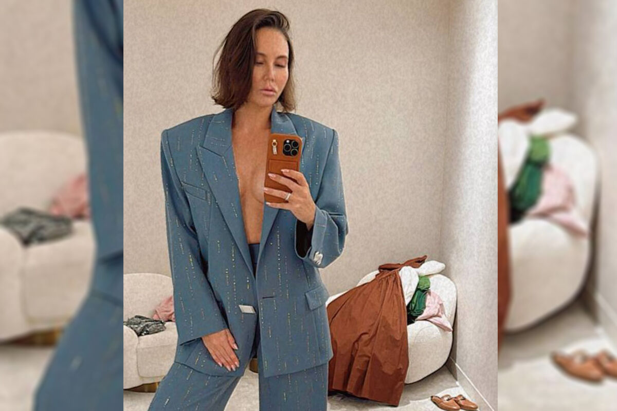 39-летняя Ляйсан Утяшева советовалась с подписчиками по поводу покупки одежды. На одном из снимков телеведущая позировала в голубом костюме с узором, состоящим из жакета и широких длинных брюк. Гимнастка предстала без бюстгальтера перед зеркалом в примерочной. Звезда распустила волосы и отказалась от косметики.