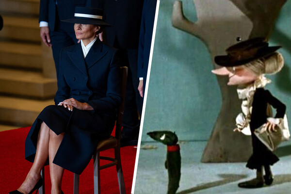 Ксения Собчак сравнила наряд Мелании Трамп с образом старухи Шапокляк — героини детских повестей и мультфильмов о приключениях Чебурашки и Крокодила Гены. Первая леди США появилась на инаугурации супруга в черном пальто бренда Adam Lipps, темно-синих туфлях на каблуках и широкополой шляпе марки Eric Javits.