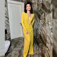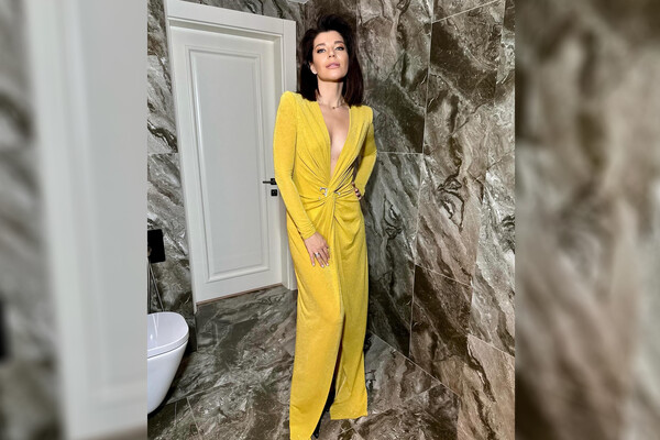 43-летняя Екатерина Волкова позировала в желтом блестящем макси-платье с глубоким декольте. Актриса добавила к наряду черные остроносые туфли на каблуках с золотистым ремешком, кольца, серьги и цепочку. Звезда «Ворониных» была запечатлена с распущенными волосами и макияжем с черными стрелками.