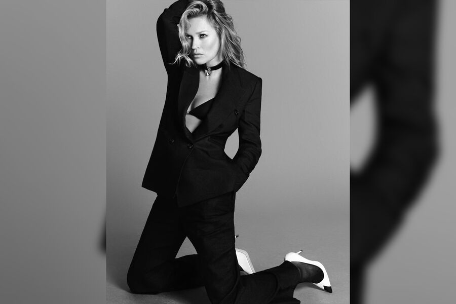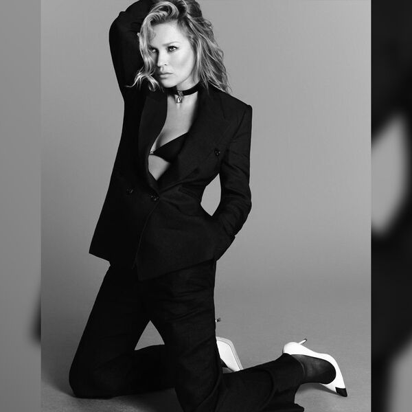 51-летняя Кейт Мосс снялась в новой рекламной кампании бренда Elisabetta Franchi. На одном из кадров супермодель предстала в черном бюстгальтере, поверх которого надела жакет. Манекенщица дополнила их брюками, капроновыми колготками, чокером и белыми туфлями на каблуках с акцентным мысом. Стилист по волосам сделал звезде подиумов небрежную укладку, а визажист — макияж с черными стрелками.