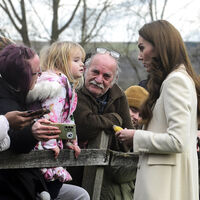 В Уэльсе после экскурсии по фабрике трикотажа, Кейт Миддлтон вернулась в машину, готовясь отправиться домой, но в момент она остановила свой кортеж, чтобы выскочить из машины и поговорить с девочкой, которая протянула ей банан. Кейт Миддлтон нарушила королевский протокол — устроила забег на каблуках.