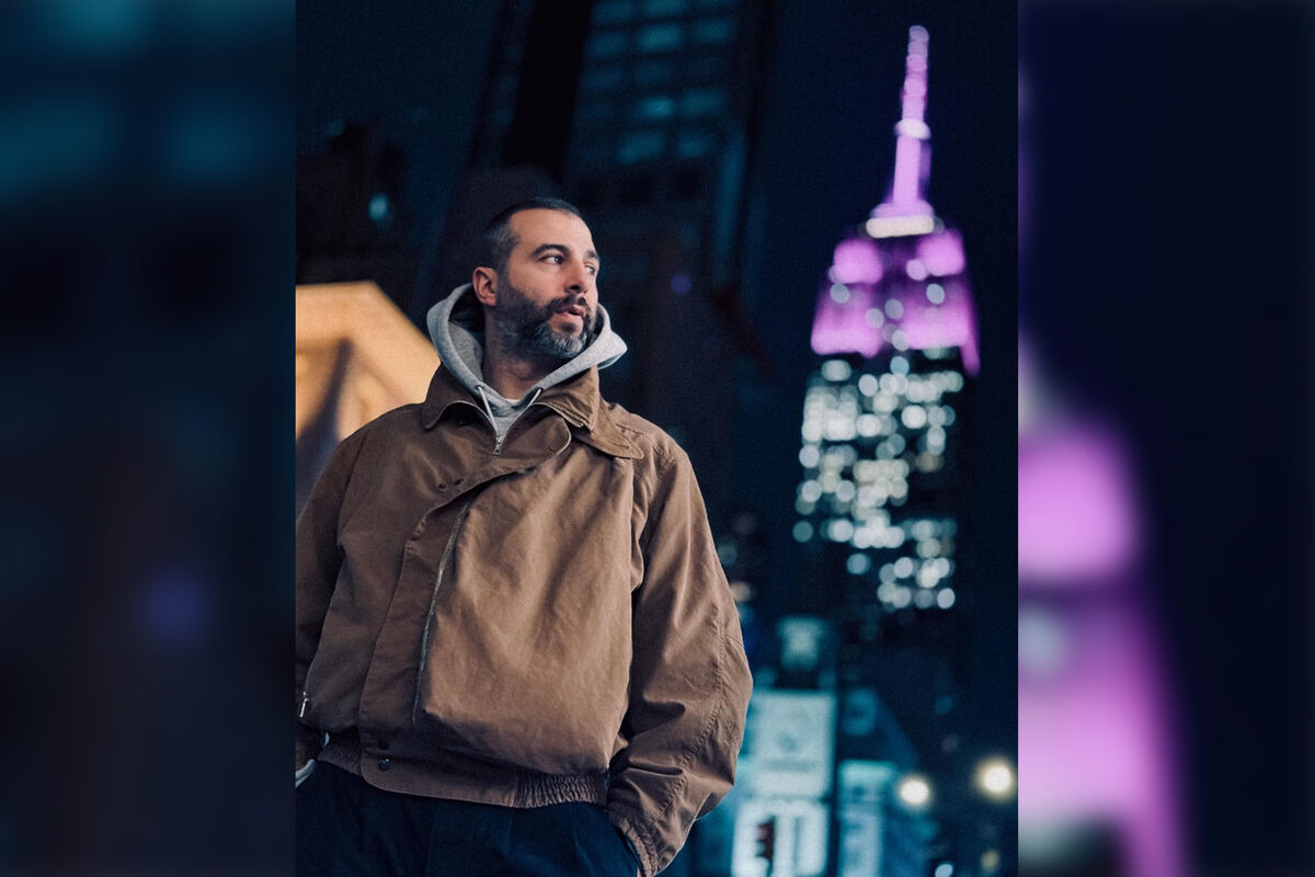 Иван Ургант позировал на фоне известного небоскреба Эмпайр-стейт-билдинг, который светился фиолетовыми огнями. Телеведущий был запечатлен в сером худи, поверх которого надел коричневую куртку. Он также добавил к образу черные брюки.