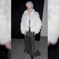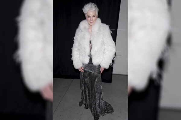 76-летняя мать Илона Маска позировала в серебряном платье с длинной юбкой и укороченной белой шубе. Волосы ей уложили с объемом у корней и сделали вечерний макияж. Мэй Маск закрыла показ бренда Juzui.