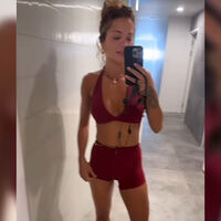 34-летняя Рита Ора снялась после тренировки в бордовом спортивном комплекте, который состоял из топа с декольте и коротких облегающих шорт. Певица также надела ожерелье. Артистка собрала волосы в небрежный пучок и отказалась от макияжа.