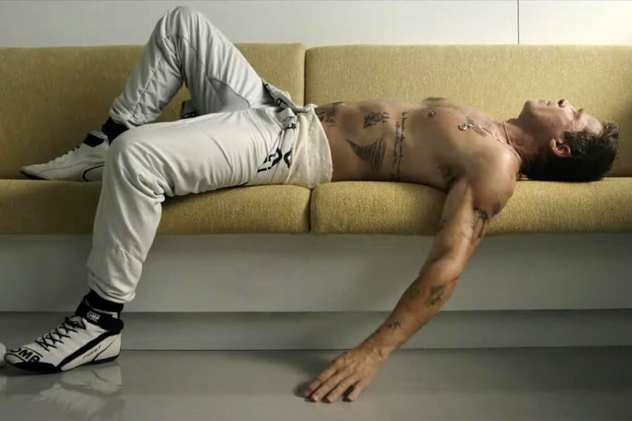 Компания Warner Bros. Pictures представила тизер фильма «Формула-1», в котором главную роль сыграл Брэд Питт. На одном из кадров 61-летний актер лежал на диване без футболки, продемонстрировав многочисленные татуировки. Артист был одет в белые штаны и бутсы.
