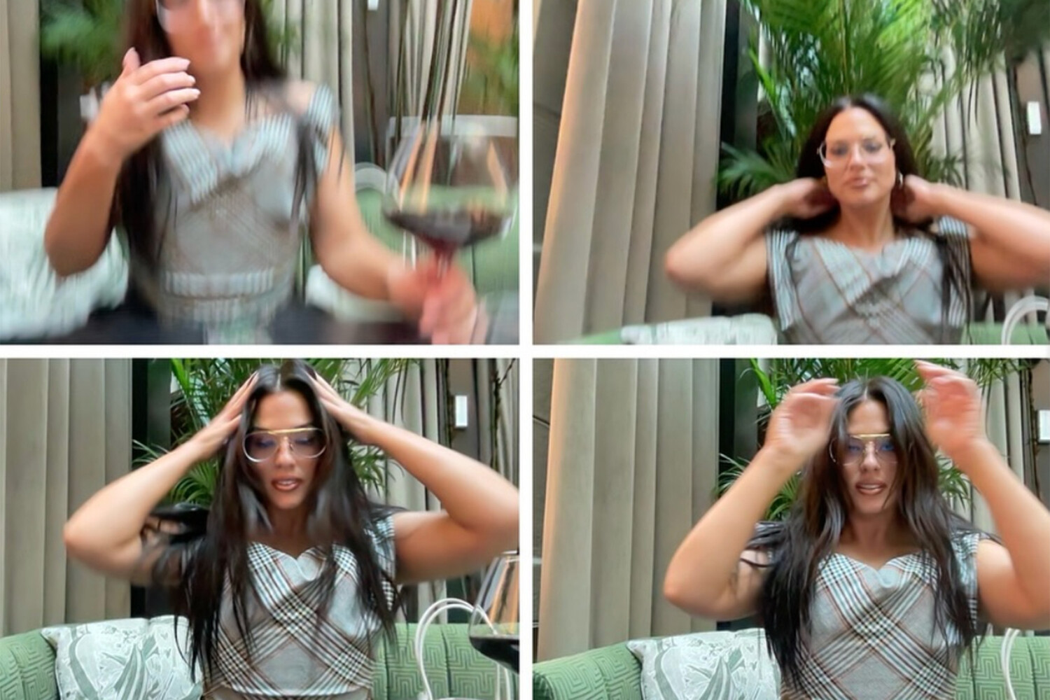 Эшли Грэм позировала в пестром зеленом платье с принтом в клеточку и глубоким декольте. Волосы ей распустили и выпрямили, а также сделали макияж с коричневой помадой. Образ завершили очки с прозрачной оправой.