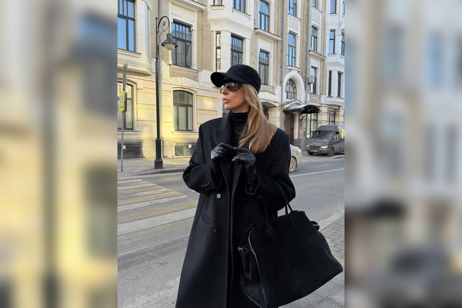 Светлана Бондарчук позировала в черном пальто, водолазке и кепке. Образ дополнили солнцезащитные очки и черная замшевая сумка от бренда The Row. Стоимость изделия начинается от 1 миллиона рублей.