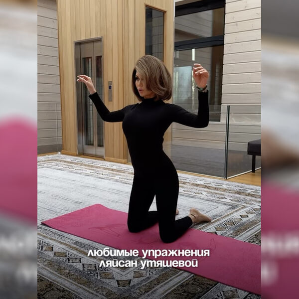 Ляйсан Утяшева показала фигуру в черном облегающем комбинезоне. Волосы она уложила с объемом у корней и прядями. Спортсменка сделала несколько упражнений и показала их в деталях.