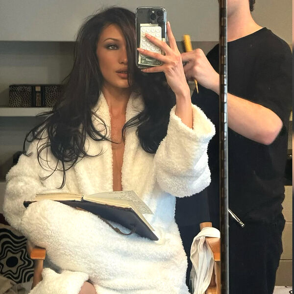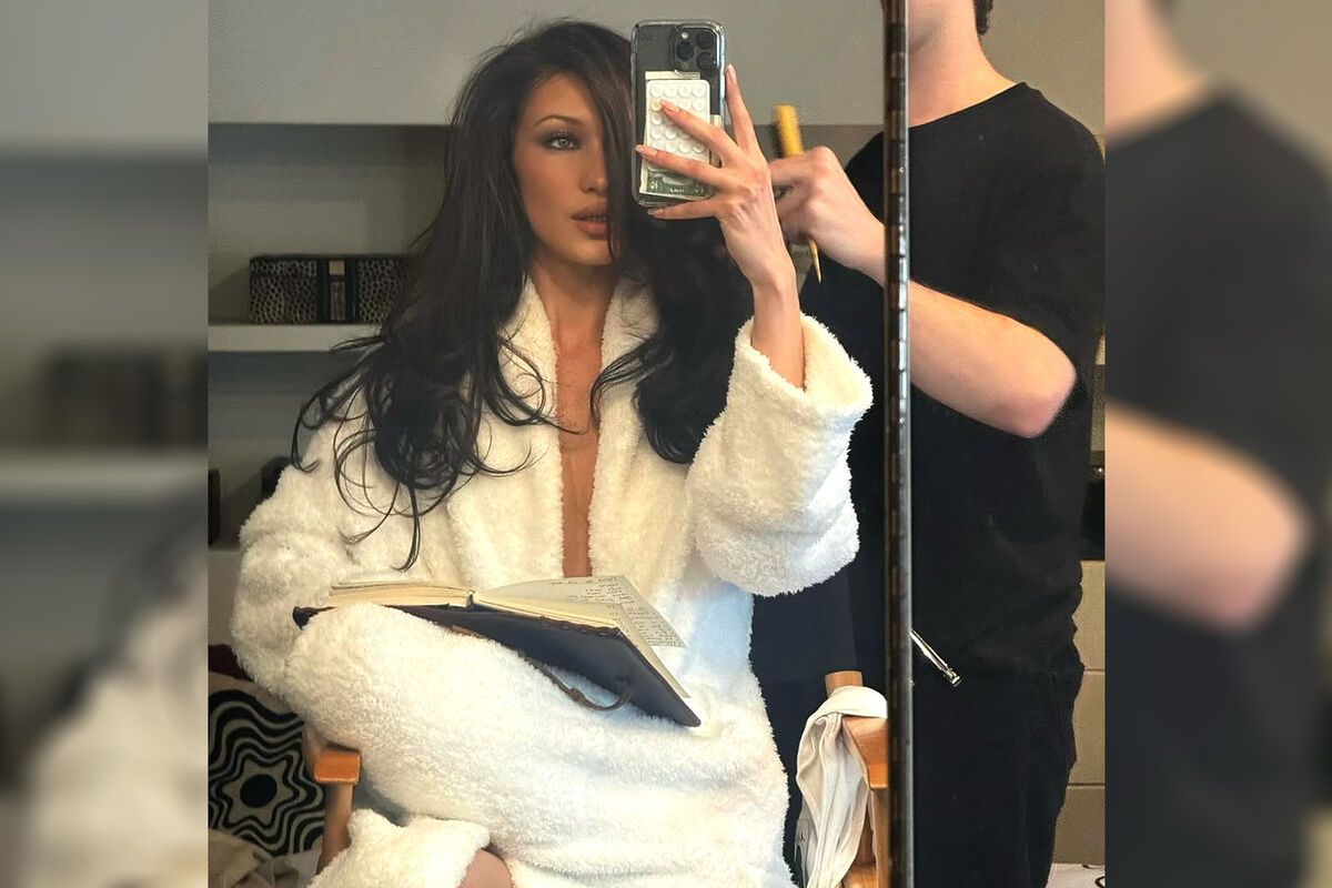 28-летняя Белла Хадид позировала в распахнутом белом халате, под который не стала надевать топ. Супермодель сидела перед зеркалом с уложенными в локоны волосами и макияжем с темными тенями и нюдовой помадой.