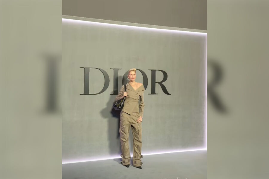 Экс-жена российского миллиардера Александра Лебедева, модель Елена Перминова пришла на показ в жакете с голым плечом. Снимками она поделилась в Instagram (владелец компания Meta признана в России экстремистской и запрещена).