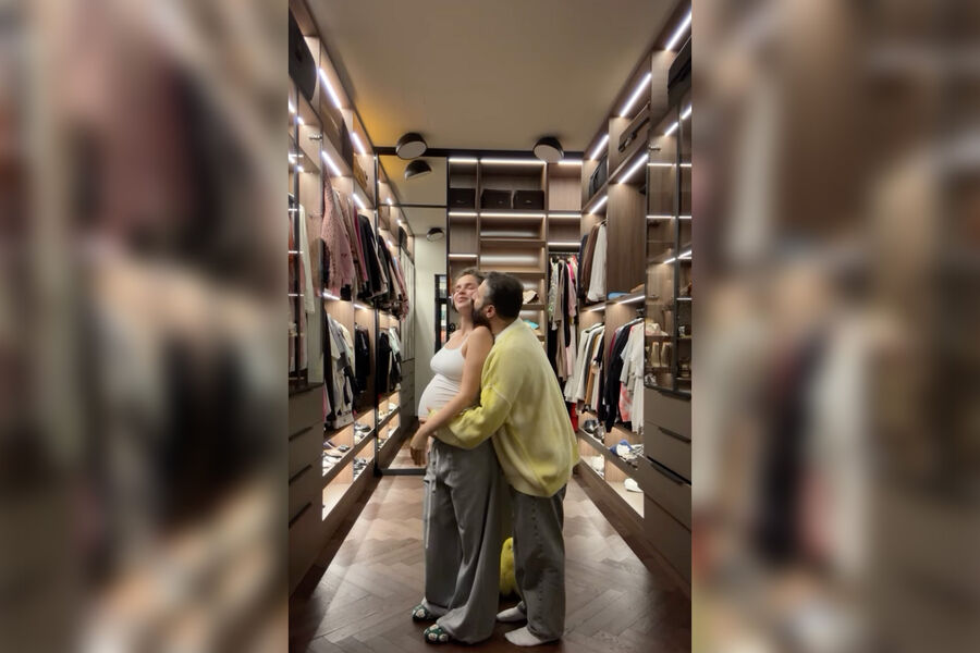 Лиза Моряк позировала в белой майке и серых брюках. Актриса отказалась от макияжа и укладки. В кадре пара станцевала вместе в интерьере гардеробной своей квартиры.