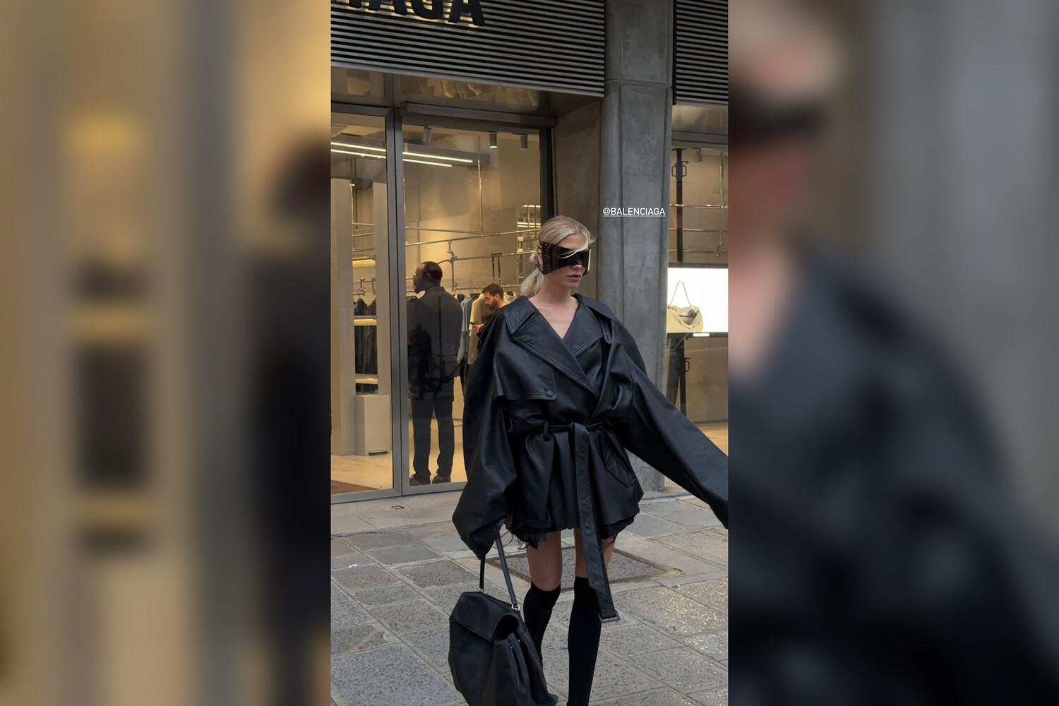 Елена Перминова стала гостьей показа Balenciaga, который состоялся в рамках Недели моды. Модель выбрала для закрытого мероприятия наряд в черном цвете. Блогерша надела укороченный кожаный тренч на несколько размеров больше, рваную мини-юбку, гольфы и очки-маску. Манекенщица завершила образ вместительной сумкой. Она собрала волосы в хвост и сделала макияж с розовой помадой.