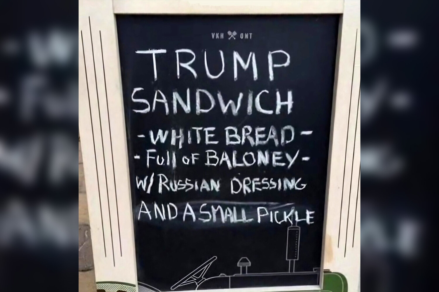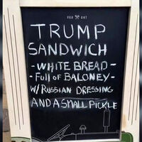 В соцсети X (бывший Twitter) было опубликовано фото доски заведения, где предлагали попробовать «сэндвич Трампа». Блюдо состоит из ломтиков белого хлеба, болонской колбасы, маленького соленого огурца и «русского соуса». При этом, что именно входит в заправку, не уточняется. Таким образом владельцы кафе высмеяли Дональда Трампа, который неоднократно заявлял, что Канада должна войти в состав Соединенных Штатов.