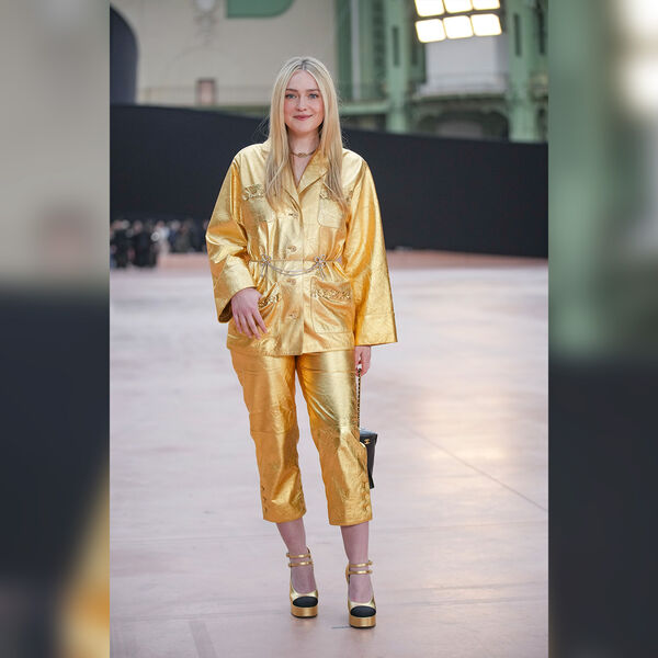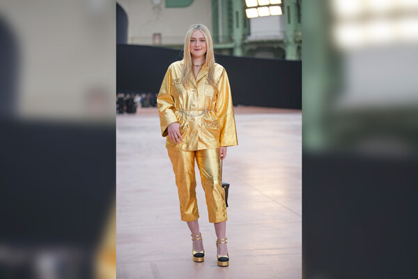 Актрису Дакоту Фаннинг в золотом костюме раскритиковали на показе бренда Chanel в Париже. Об этом сообщает Harper.