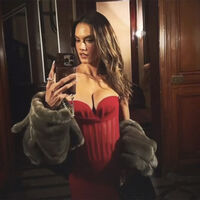 «Ангел» Victoria's Secret, модель Алессандра Амбросио снялась в мини-платье с глубоким декольте. Снимками она поделилась в Instagram (владелец компания Meta признана в России экстремистской и запрещена).