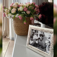 Ксения Бородина опубликовала фото, сделанное в интерьере загородного дома. Телеведущая показала фрагмент спальни: комод с кремовой фоторамкой, на которой был портрет Бородиной с Сердюковым, свеча и корзина с цветами.