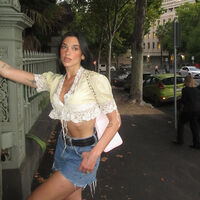 29-летняя Дуа Липа позировала в кадре в светло-желтом топе с кружевом и глубоким декольте, который дополнила голубыми короткими джинсовыми шортами и коричневыми высокими казаками. Поп-исполнительница завершила образ черным кожаным ремнем и нежно-розовой сумкой на плечо. Певица была запечатлена с распущенными волосами и макияжем в естественном стиле.