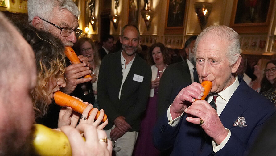76-летний король Чарльз весело играл на морковной флейте на приеме в честь музыкальных сообществ Великобритании, состоявшемся в Виндзорском замке.