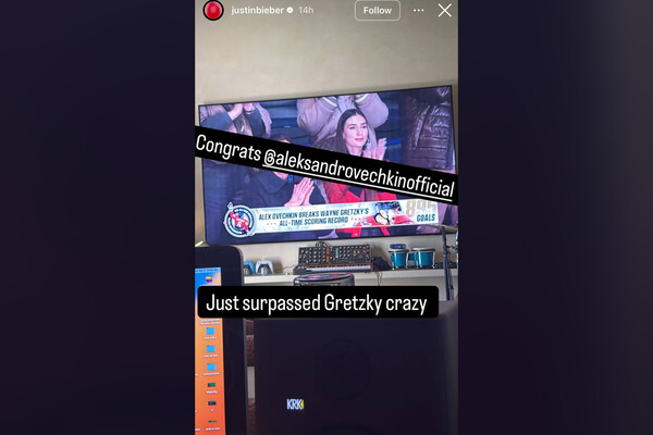 Певец Джастин Бибер публично поздравил российского нападающего клуба Национальной хоккейной лиги (НХЛ) «Вашингтон Кэпиталз» Александра Овечкина с новым снайперским рекордом лиги. Поп-исполнитель опубликовал фотографии и видео в Instagram (владелец компания Meta признана в России экстремистской и запрещена).