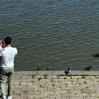 Милош Бикович был запечатлен вместе с ребенком во время прогулки. Актер держал сына в руках и стоял у водоема. Артист был одет в голубое поло, зеленые джинсы и кроссовки.