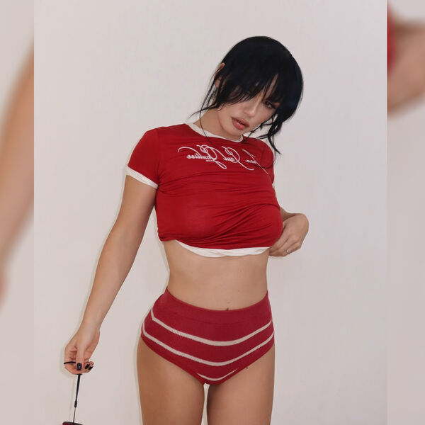 40-летняя Ольга Серябкина устроила фотосессию, где предстала в красной приподнятой футболке с надписью и полосатых трусах-шортах. Экс-солистка группы SEREBRO позировала перед камерой с уложенными волосами и макияжем с черными стрелками, румянами и нюдовым блеском для губ.