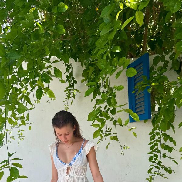 15-летняя Анна Пересильд позировала перед камерой в белом прозрачном мини-платье, под которое надела голубое бикини с принтом. Актриса была запечатлена с мокрыми распущенными волосами и без косметики.