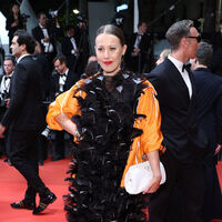 Ксения Собчак появилась на третьем дне Каннского фестиваля. Для выхода она предпочла черное платье из перьев и оранжевую куртку на молнии от бренда Prada из весенне-летней коллекции 2025. Стоимость изделия составляет около 600 тысяч рублей. Образ дополнил белый клатч и туфли на высоких каблуках с золотым мысом.