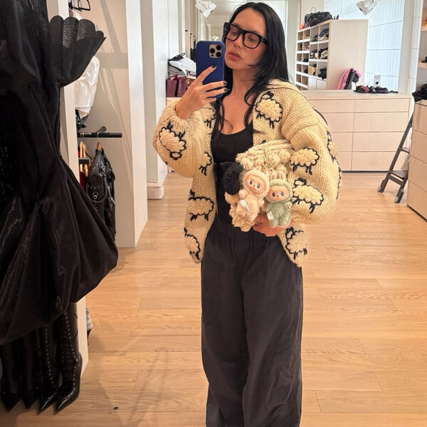 40-летняя Ольга Серябкина стояла перед зеркалом в черной майке, светлом вязаном кардигане с овцами, графитовых трениках и тапках. Певица держала в руке сумку, на которую прицепила популярные плюшевые игрушки-монстры Лабубу с кроличьими ушками и мехом от пекинского бренда Pop Mart. Стоимость каждого брелка на онлайн-платформе для ресейла дизайнерских вещей Oskelly составляет 12 тысяч рублей.