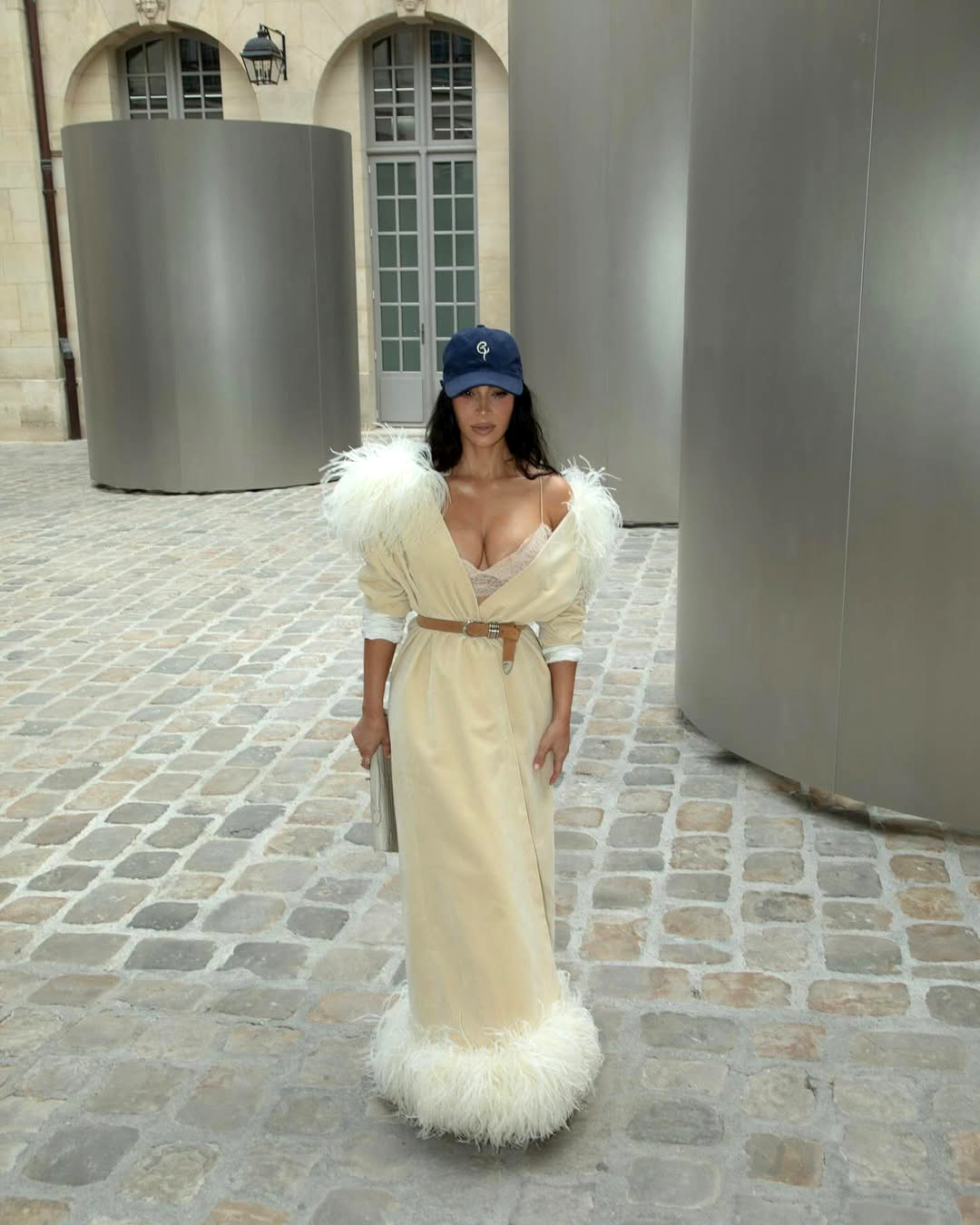 44-летняя Ким Кардашьян показала в Instagram (владелец компания Meta признана в России экстремистской и запрещена) фото, сделанные во время пребывания в Париже. Модель позировала в светло-желтом плаще с перьями и кружевном платье с глубоким декольте. Бизнесвумен добавила к образу синюю кепку и коричневый ремень. Однако интернет-пользователи не оценили необычное сочетание вещей и высмеяли наряд знаменитости.