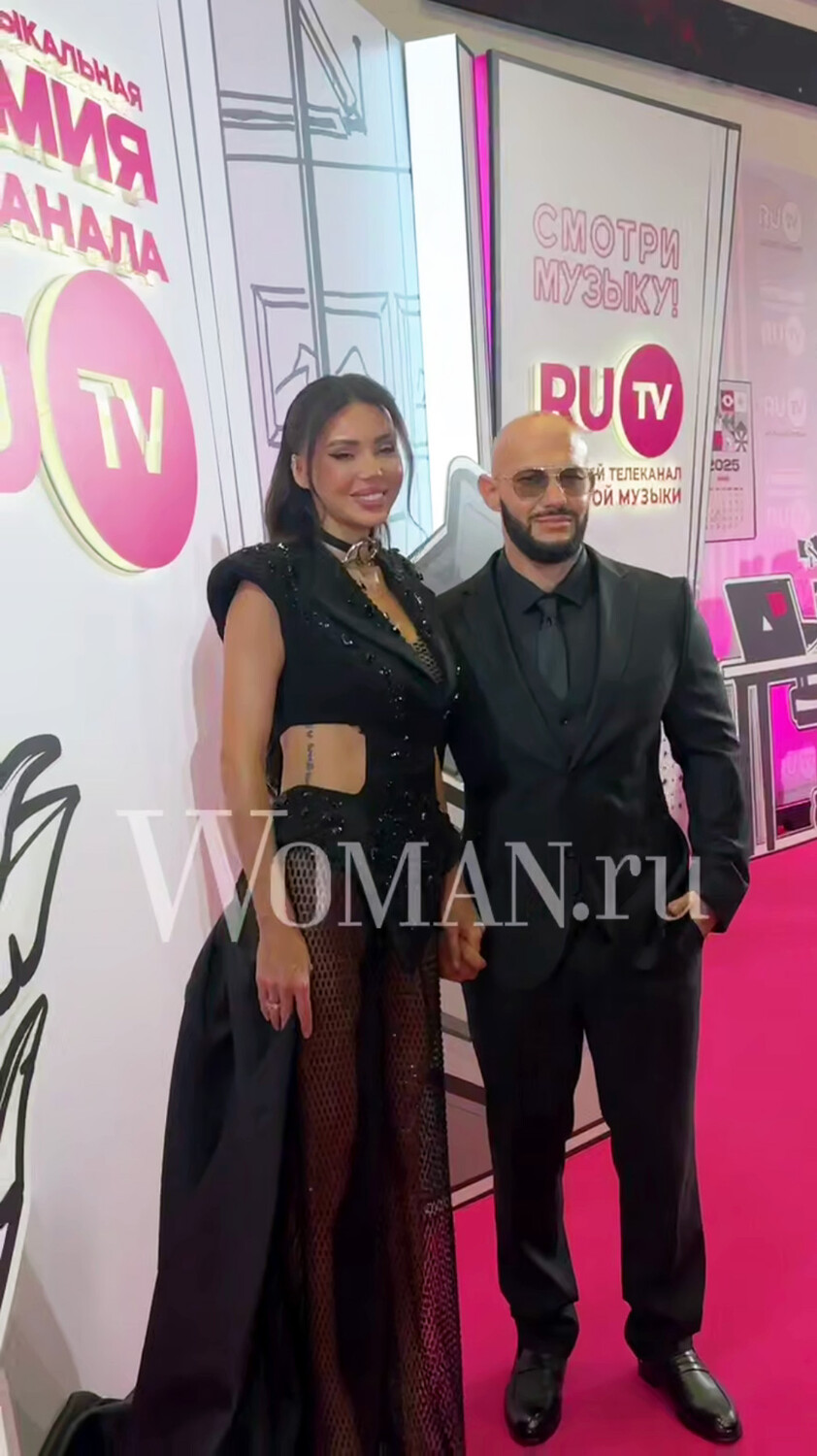 Оксана Самойлова и Джиган пришли на премию телеканала RU.TV, которая состоялась 21 мая в Live Arena. Блогерша выбрала для светского события черное прозрачное макси-платье с глубоким декольте, украшенное стразами. Она также надела чокер и кольца. Знаменитости уложили распущенные волосы и сделали вечерний макияж с черными стрелками и нюдовыми губами. Джиган предпочел черную рубашку с галстуком, брючный костюм, туфли и очки.