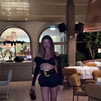 34-летняя Нюша была запечатлена в черном топе с открытыми плечами и длинными рукавами, который сочетала с микрошортами и ремнем с массивной золотой пряжкой. Поп-исполнительница добавила к образу маленькую сумку, серьги-кольца и босоножки на каблуках. Певица позировала с распущенными волосами и макияжем в естественном стиле.