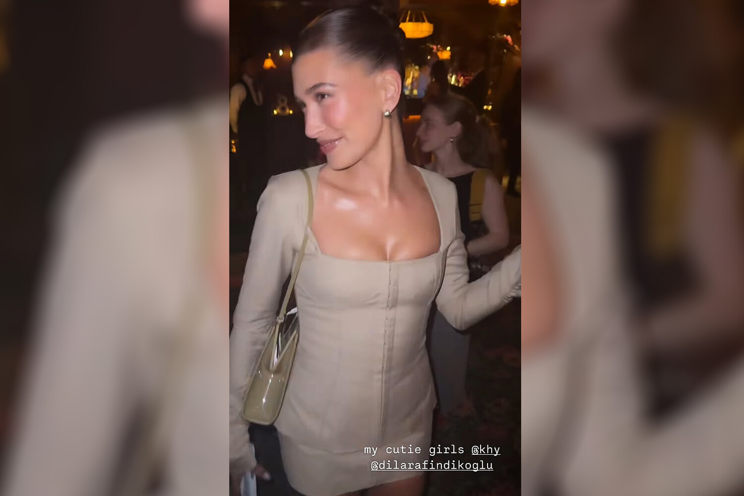 Жена певца Джастина Бибера Хейли пришла на вечеринку в откровенном платье. Видео опубликовано в Instagram (владелец компания Meta признана в России экстремистской и запрещена).