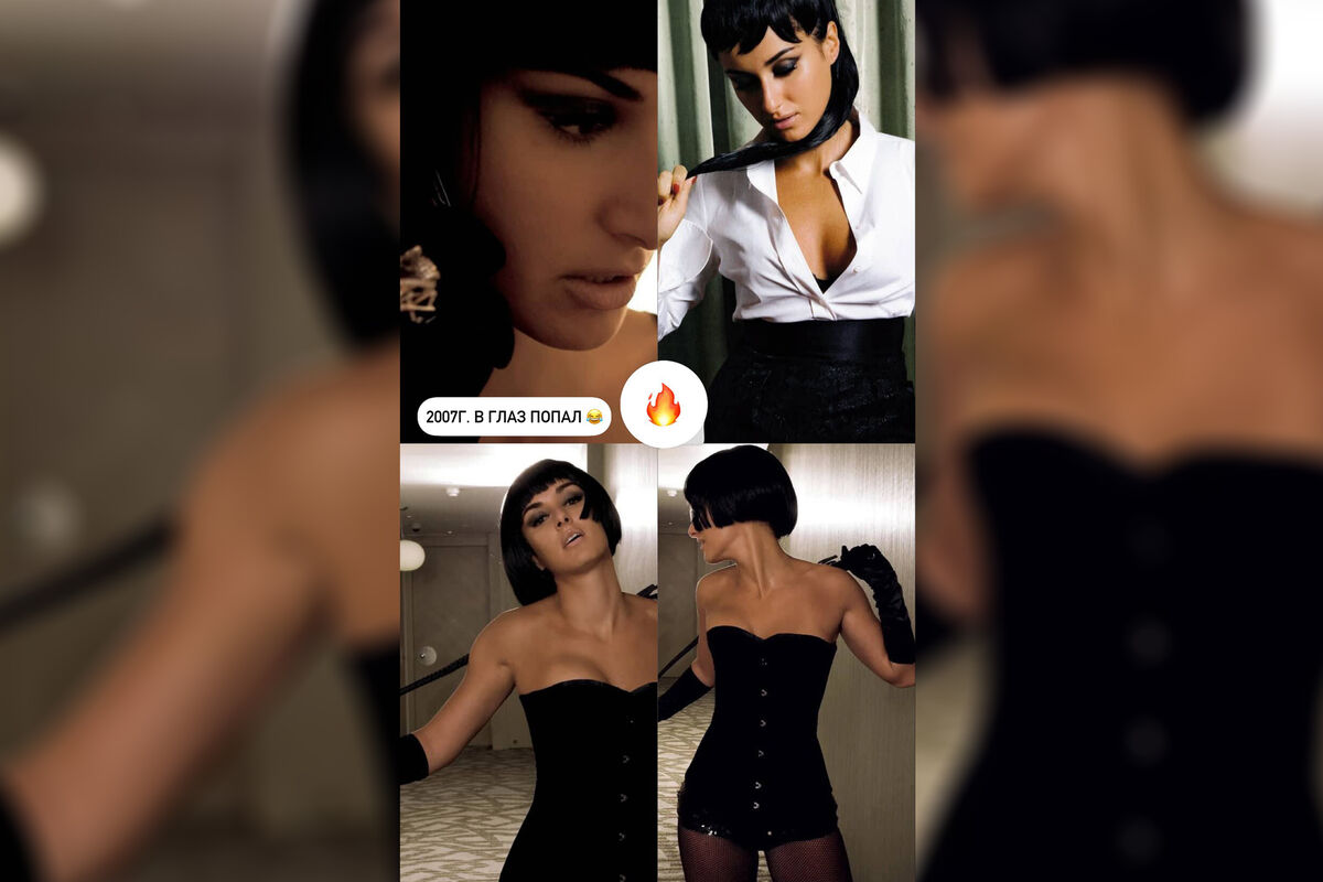 49-летняя Тина Канделаки позировала в черном корсетном комбинезоне с укороченными шортами и чулками. Тогда бизнесвумен носила угольно-черное боб-каре. Ей также сделали вечерний макияж со стрелками и розовым блеском.
