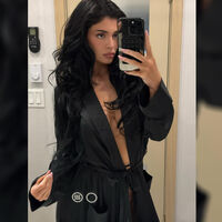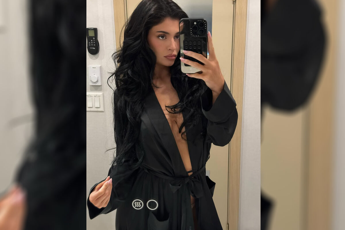 27-летняя Кайли Дженнер стояла перед зеркалом в черном шелковом халате, под который не стала надевать бюстгальтер. Модель была запечатлена с уложенными в локоны волосами и макияжем с тушью, румянами, контурингом и розовой матовой помадой.
